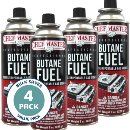 4 x 8oz. Butane Fuel Canister, Tin Fuel Refill for Kitchen Torch, Portable Camp Stove, Butane Camp Stove, Tin Canister for Picnics
